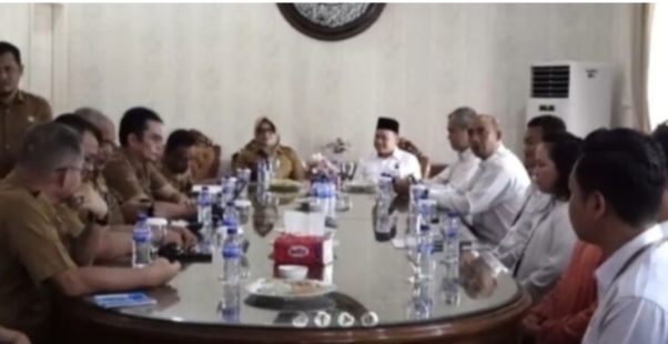 Tampak Bupati Tanjab Timur, Hj. Dillah Hich beserta Kepala BPK RI Perwakilan. Jambi tampak melakukan diskusi pembahasan terkait pemeriksaan keuangan dan aset pemerintah daerah Kabupaten. Tanjung Jabung Timur Propinsi Jambi.